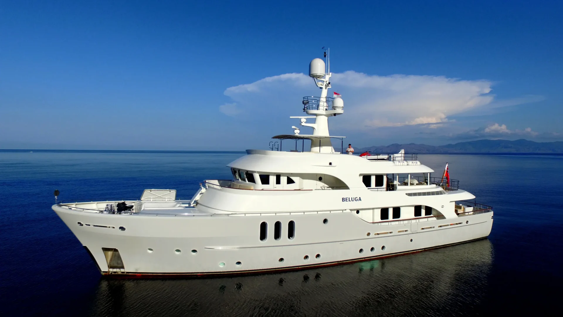 5 staterooms for up to 10 guests: full-beam master suite on the main deck, 2 double cabins (convertible to singles), and 2 twin cabins with pullman beds. 6 crew onboard. Features 4-person Jacuzzi, gym equipment, and multiple entertainment areas. Built 2006, refitted 2011 and 2017.